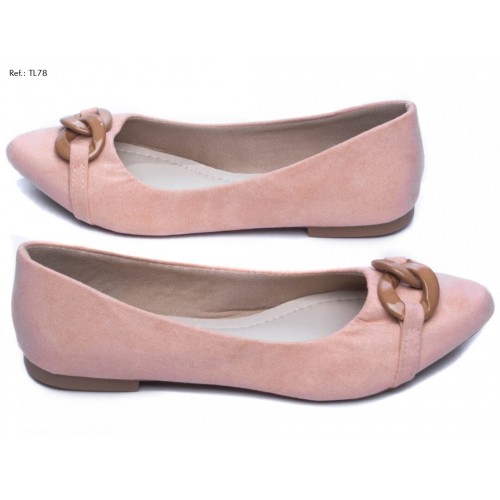 Enfeite: Tira em Camurça Rosa e ABS Bege;