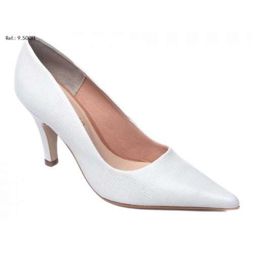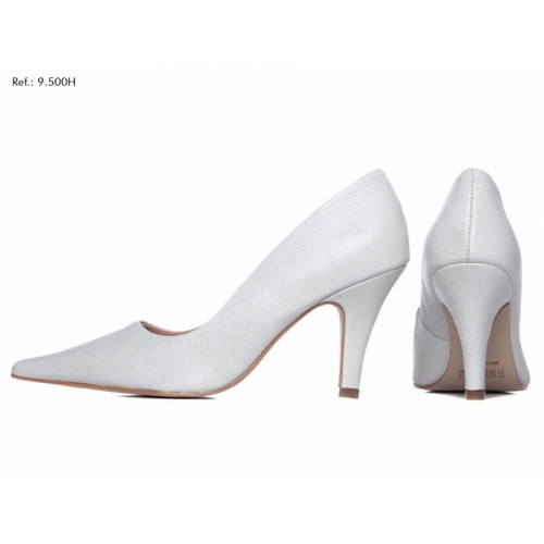 Salto: 8 cm de Altura Revestido em Croco Off White;