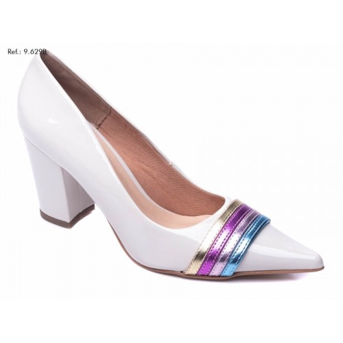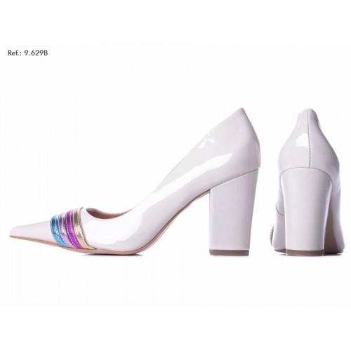 Salto: 8 cm de Altura Revestido em Verniz Off White;