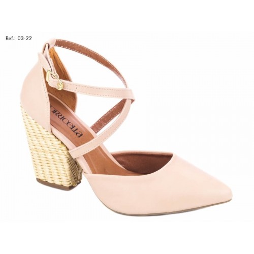 Sapato Scarpin feminino, em material sintético nas cores rose e natural, fechamento de fivela lateral na cor dourado, palmilha na cor rose com taloneira na cor natural, salto em material sintético na cor natural, com 9 cm de altura, solado emborrachado na cor bege.