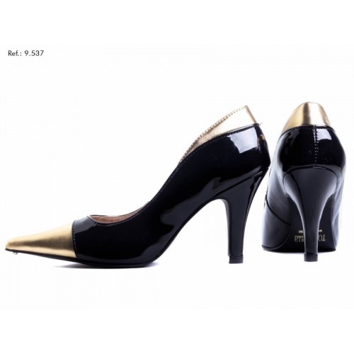 Salto: 8 cm de Altura Revestido em Verniz Preto;