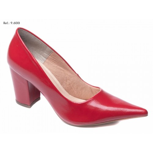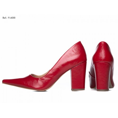 Salto: 8 cm de Altura Revestido em Verniz Vermelho;