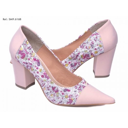Palmilha: 8 mm de Espessura, Espuma em EVA, Revestida em Napa Rosé e Taloneira Napa Bege;