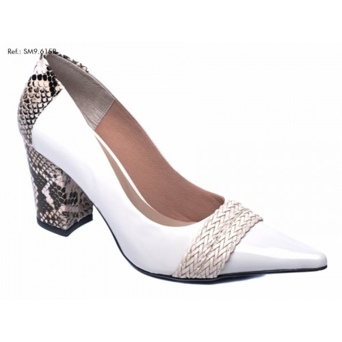 Palmilha: 8 mm de Espessura, Espuma em EVA, Revestida em Verniz Off White e Taloneira Napa Bege;