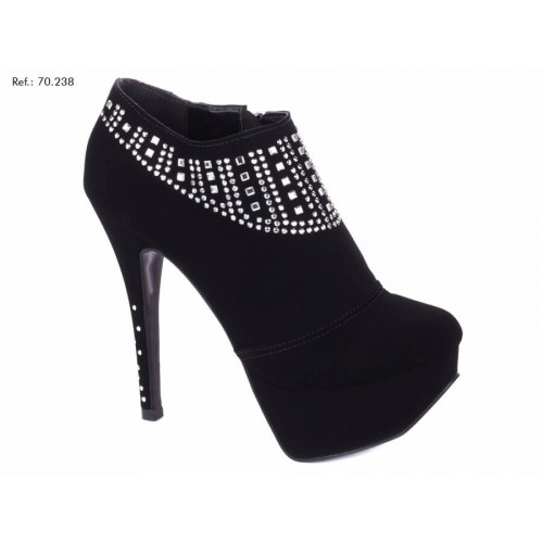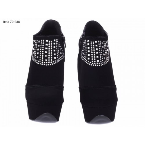 Bota meia pata feminina, material sintético na cor preto, com enfeites de tachas na cor prata, fechamento de zíper na lateral na cor preto, palmilha encapada na cor preto com taloneira na cor preto, meia pata externa na cor preto, salto encapado em material sintético na cor preto e com 13 cm de altura, sola emborrachada na cor preto.